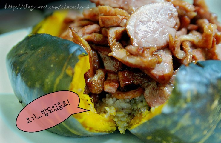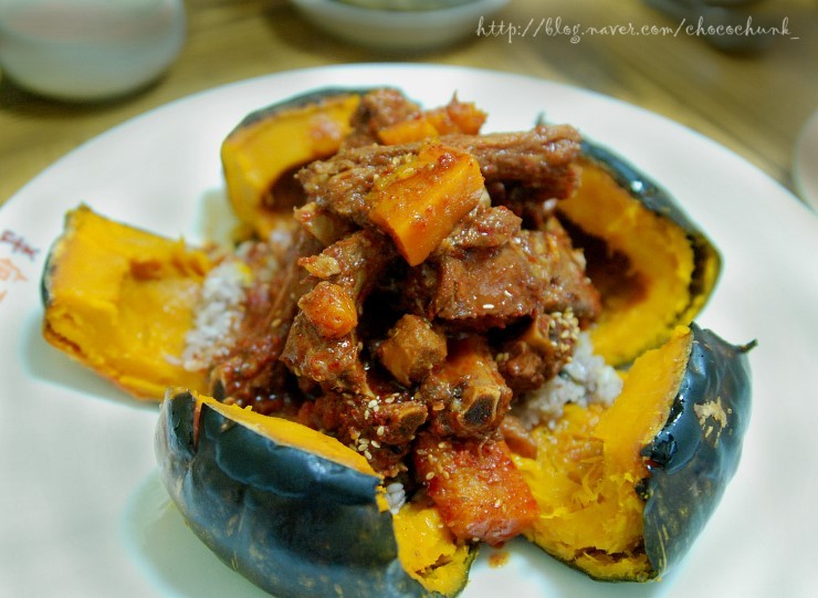 호박안에 밥이 들어있어서 따로 공기밥 시킬 필요도 없고 부담없이 한숟가락씩 떠먹기에도 좋은거같고.