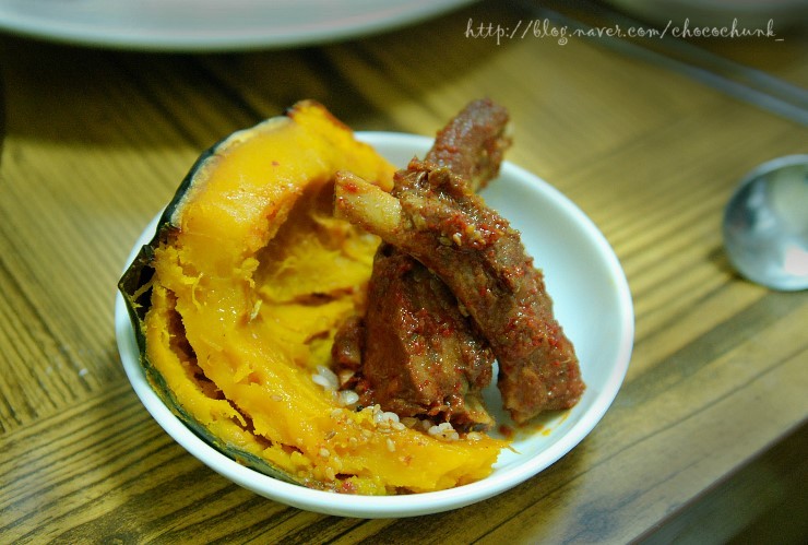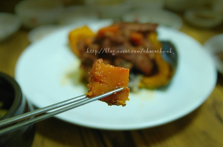 결국은 호박 한쪽 뚝 떼서 갈비와 함께 접시에 갖고 오고야 말았다는.....