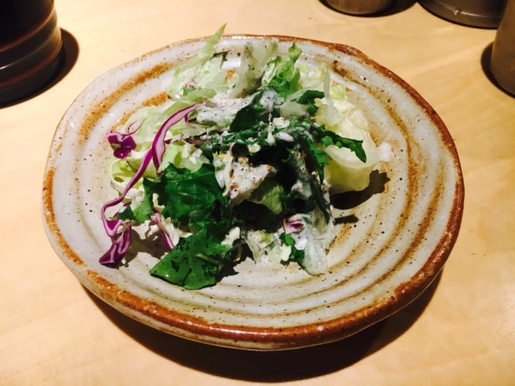 기본 장국부터 생강초와 마늘절임 그리고 새콤한 샐러드가 나왔어요